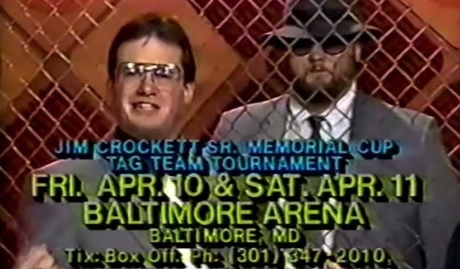 4/10: Today in Pro Wrestling HistoryJeff QuintonApr 10, 2026∙ Paid11ShareSubscribeShareJim Crockett Promotions presented Day 1 of the Jim Crockett Sr. Memorial Cup ‘87 on Friday, April 10, 1987, at the Baltimore Arena in Baltimore, Maryland. Results were as follows:Continue reading this post for free, courtesy of Jeff Quinton.Claim my free postOr purchase a paid subscription.Previous