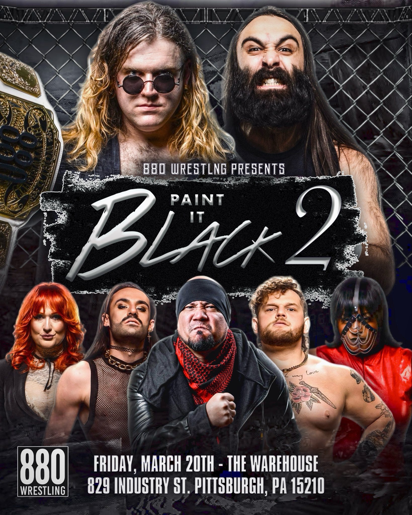 880 Wrestling will hold Paint It Black 2 at The Warehouse, 829 Industry Street in Pittsburgh, Pennsylvania, on Friday, March 20, 2026. The bell time is 8 p.m. Tickets are available online.