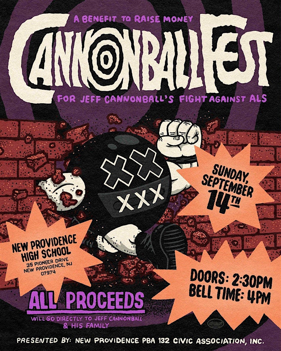CannonballFest will take place on Sunday, September 14, 2025, to raise funds for Jeff Cannonball’s battle with ALS at a venue to be announced. 100% of the proceeds from the event will be donated to Jeff and his family to help with the costs associated with his care. Tickets are available online.