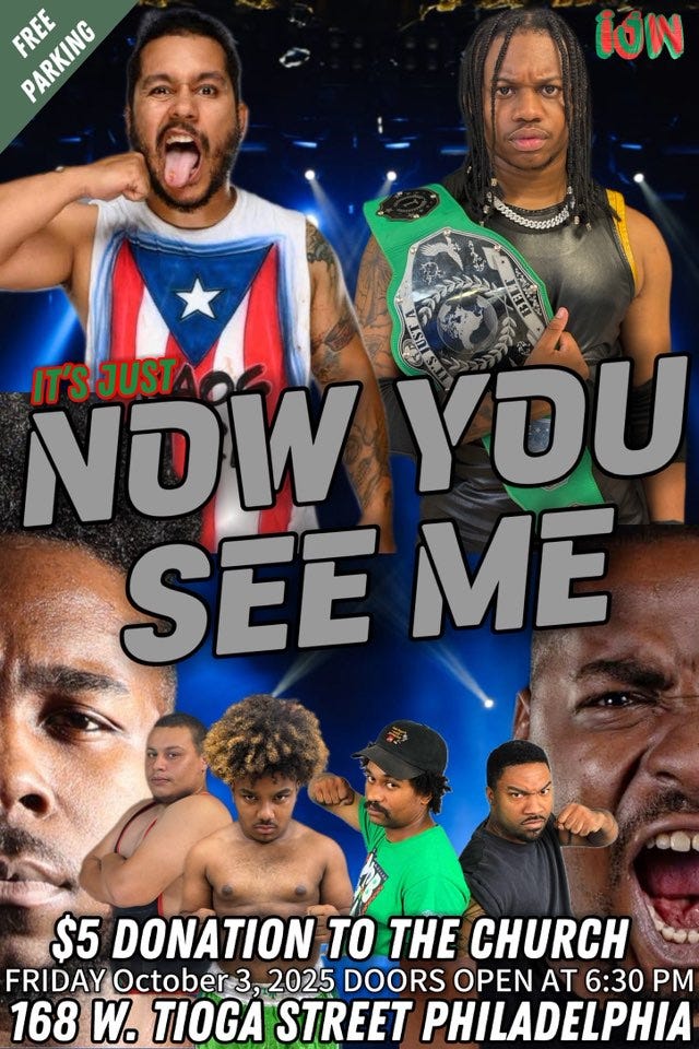 It’s Just Wrestling presented Now You See Me on October 3, 2025, in Philadelphia, Pennsylvania. Results are below.
