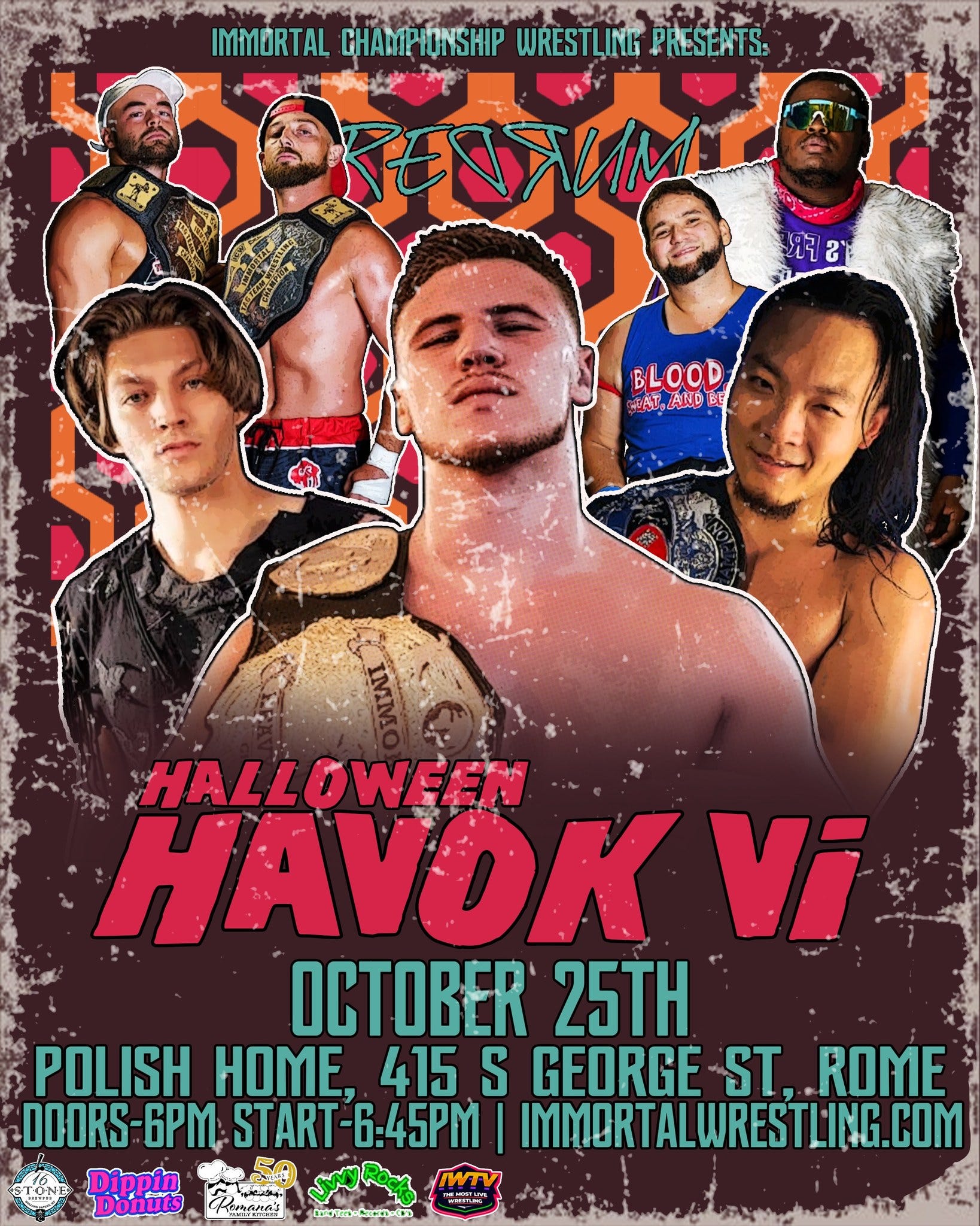 Immortal Championship Wrestling presents Halloween Havok VI on Saturday, October 25, 2025, at the Rome Polish Home, 415 Park Drive in Rome, New York. Bell time is set for 7 p.m. Tickets are available online.