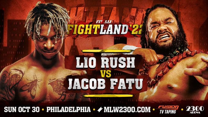 I noted last week that Lio Rush had tweeted that he was cleared to return to the wring. As I noted, he will be wrestling in England on October 22 in the 2022 British J-Cup. He tweeted yesterday that he’ll be in action in Philadelphia eight days later at MLW Fightland ‘22 at the 2300 Arena (f.k.a. ECW Arena).