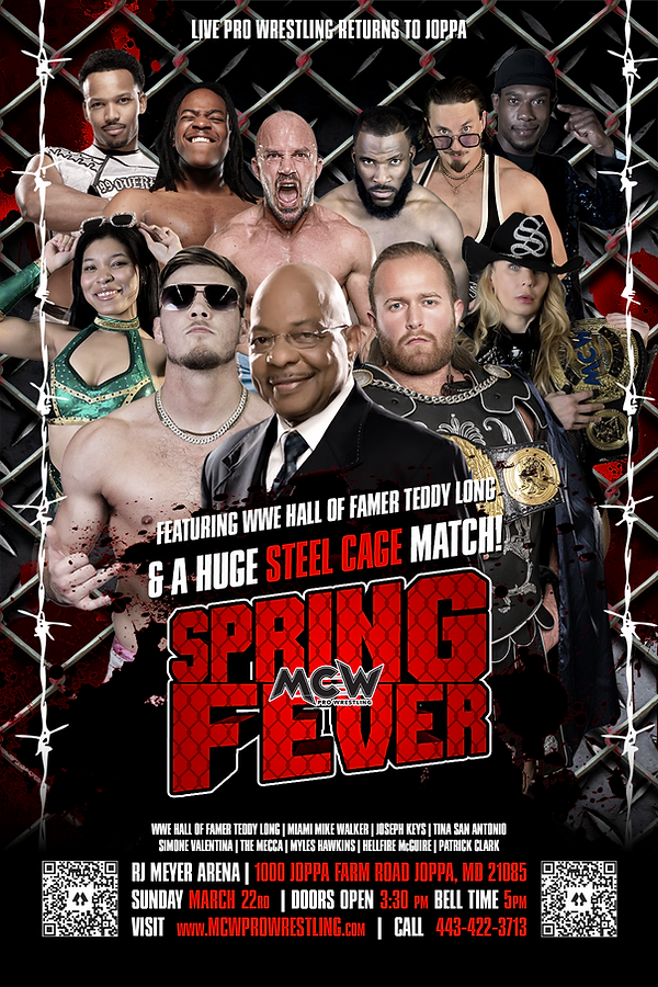 MCW Pro Wrestling will hold Spring Fever at RJ Meyer Arena, 1000 Joppa Farm Road in Joppa, Maryland, on Sunday, March 22, 2026. The doors open at 3:30 p.m., and the bell time is 5 p.m. Tickets are available online.