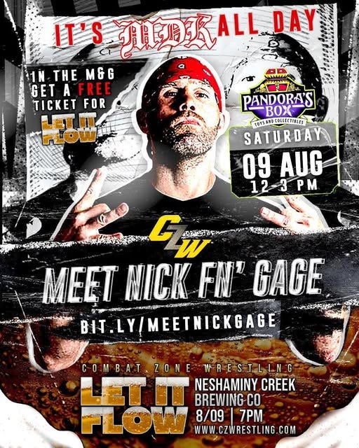 Fans who attend the meet and greet will receive a free ticket to CZW: Let It Flow, taking place later that night at Neshaminy Creek Brewing Company in Croydon, Pennsylvania.
