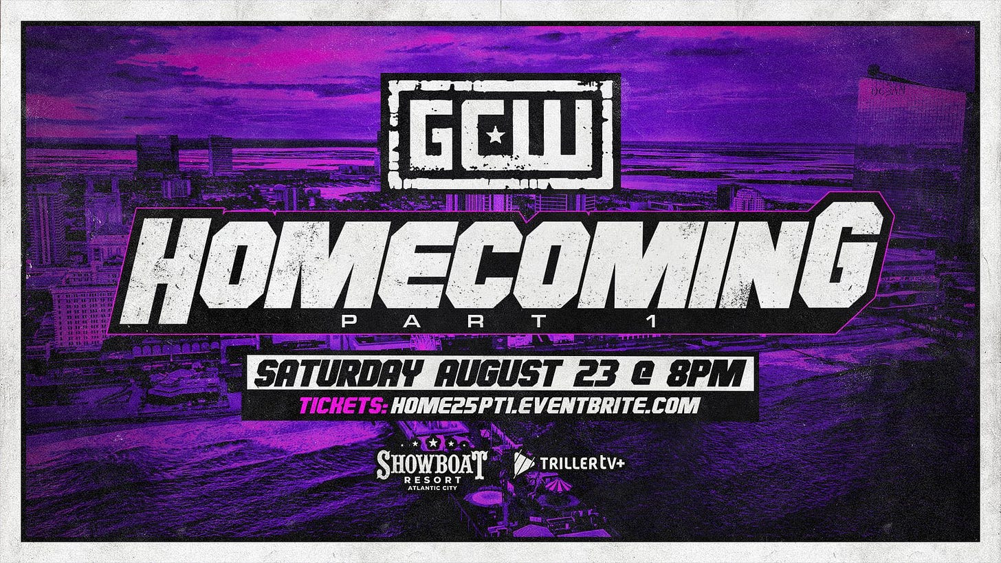 Game Changer Wrestling presented Homecoming 2025 Part 1 on Saturday, August 23, 2025, at the Showboat Hotel in Atlantic City, New Jersey. Results are below.
