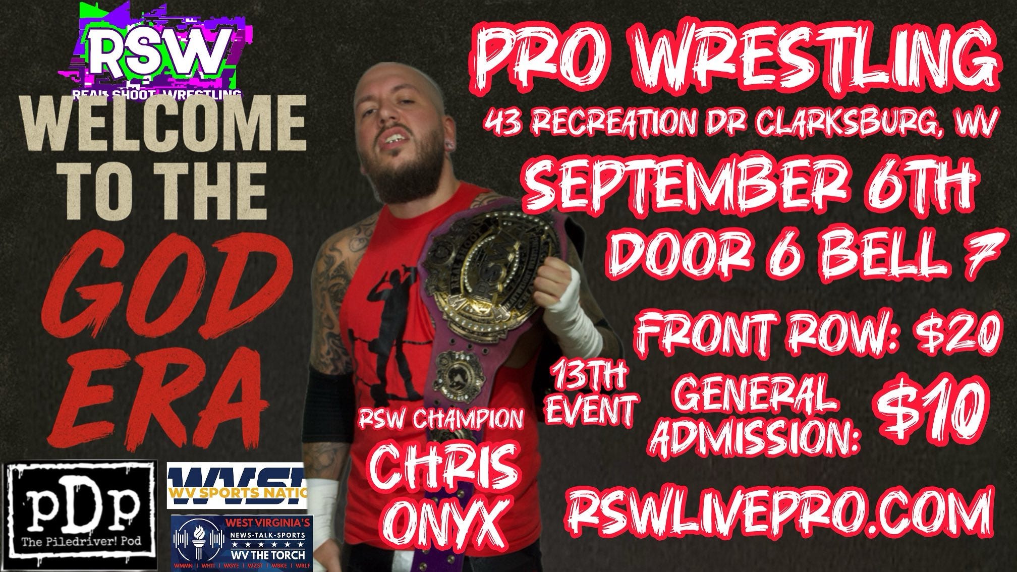 Real Shoot Wrestling will hold Welcome to the God Era at Harrison County Parks & Recreation, 43 Recreation Dr., in Clarksburg, WV, on Saturday, September 6, 2025. Doors open at 6 p.m. and the bell time is 7 p.m. Tickets are available at the door.