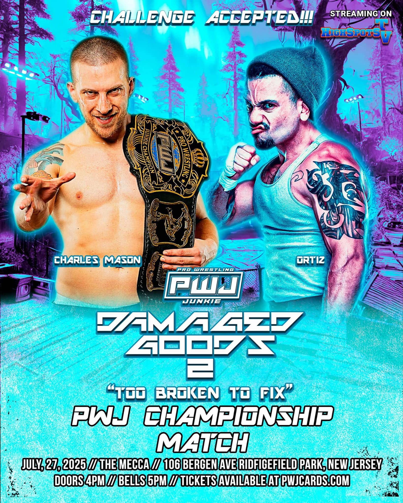 Pro Wrestling Junkie held Damaged Goods 2: Too Broken To Fix at the Ridgefield Park Knights of Columbus in Ridgefield Park, New Jersey, on Sunday, July 27, 2025. The results are as follows: