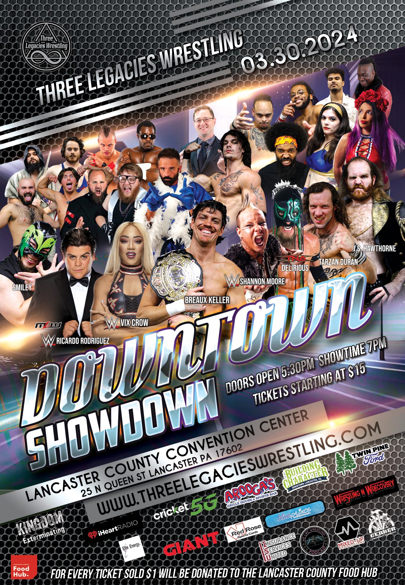 This Saturday, March 30, Three Legacies Wrestling presents Downtown Showdown at the Lancaster County Convention Center in Lancaster, PA. Doors open at 5:30 and bell time is 7 p.m. Tickets are available online.