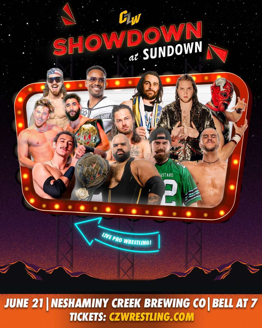 Combat Zone Wrestling presents Showdown at Sundown on Saturday, June 21, 2025, at Neshaminy Creek Brewing Company, 909 Ray Ave, Croydon, PA 19021. Doors open at 6:00 PM and bell time is 7:00 PM. Tickets are available online.