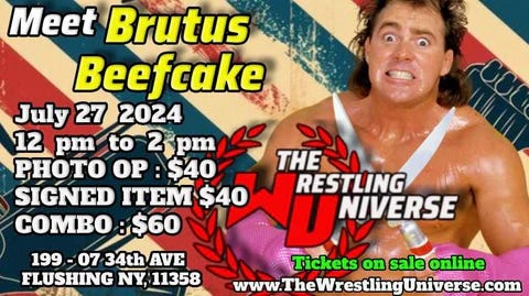 Fans can join Brutus "The Barber" Beefcake for an in-store meet and greet on Saturday, July 27th, from 12:00 PM to 2:00 PM. The event will take place at The Wrestling Universe store, located at 19907 34th Ave in Flushing, Queens, NY. Tickets will be available at the door on the day of the event. For more details, call (718) 460-2777.