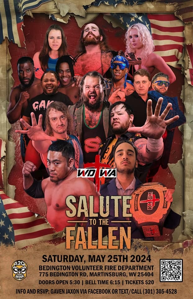 This Saturday, May 2, World Domination Wrestling Alliance presents Salute to the Fallen at the Bedington Volunteer Fire Department in Martinsburg, WV. Doors open at 5:30 p.m. and bell time is 6:15. For tickets, call or text (301) 305-4528.