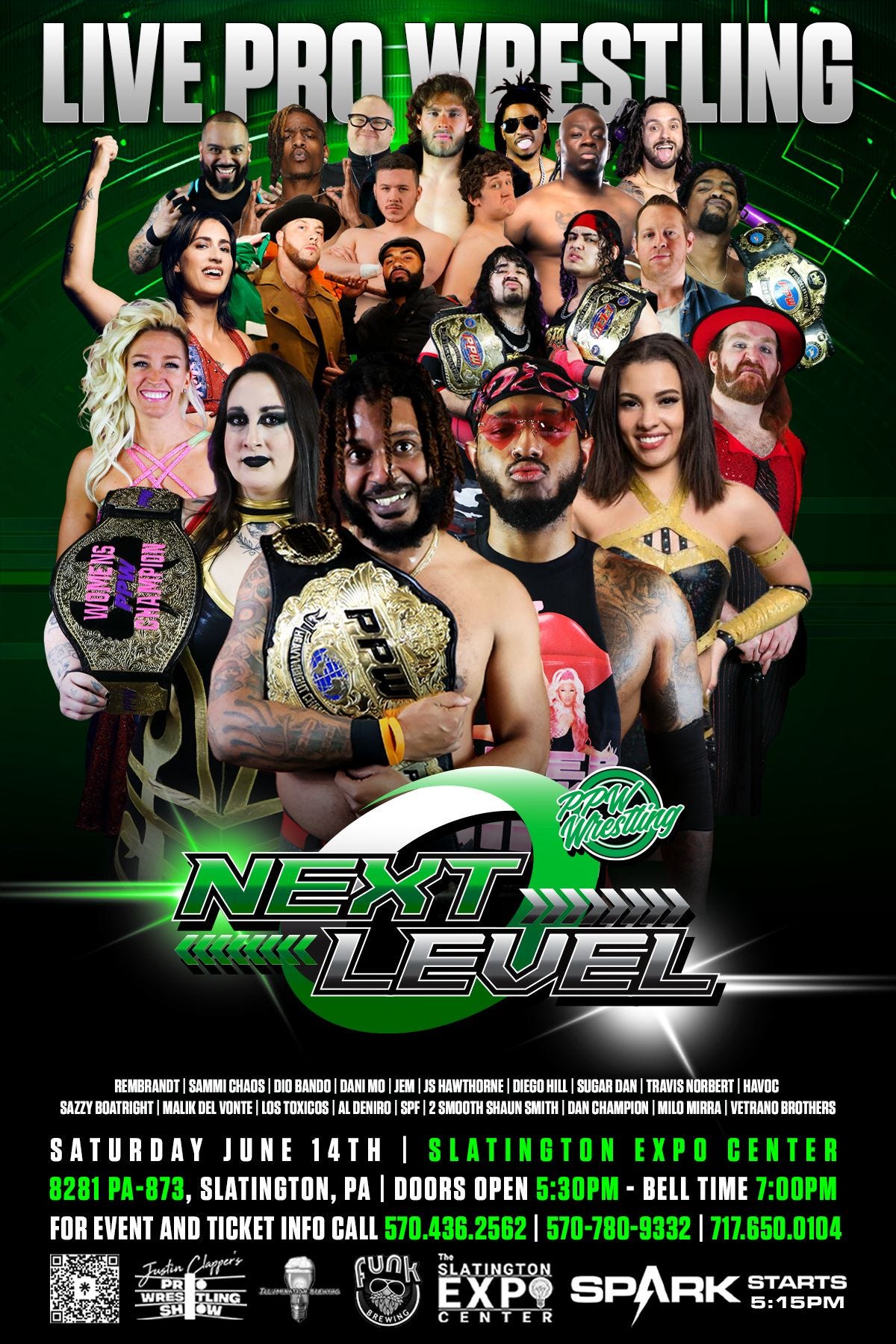 PPW Wrestling will present Next Level on Saturday, June 14, 2025, at the Slatington Expo Center, located at 8281 PA-873, Slatington, Pennsylvania. Doors open at 5:30 p.m. and bell time is scheduled for 7:00 p.m. Tickets are available online.