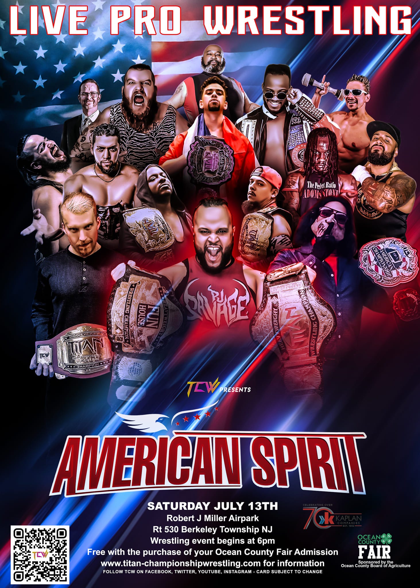 This Saturday, July 13, Titan Championship Wrestling is hosting Mayhem on the Midway at the Ocean County Fair in Berkeley Township, NJ. The event starts at 6 pm. Admission is free with the purchase of tickets to the Ocean County Fair.