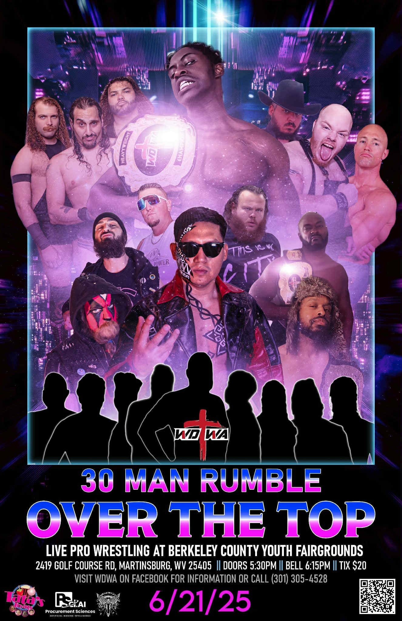 WDWA presents Over the Top at the Berkeley County Youth Fairgrounds, located at 2419 Golf Course Road, Martinsburg, West Virginia, on Saturday, June 21. Doors open at 5:30 p.m. and bell time is scheduled for 6:15 p.m. For tickets and information, call 301-305-4528.