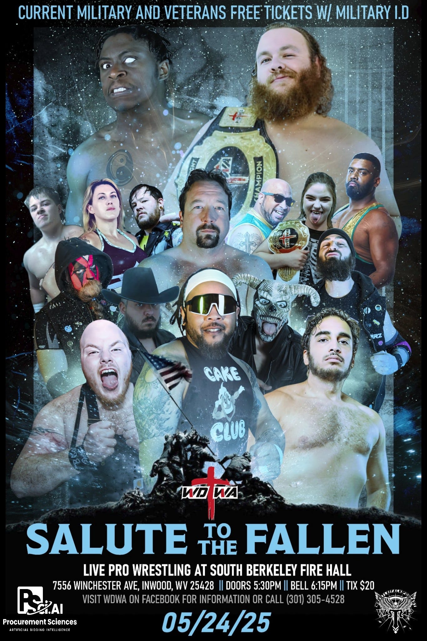 WDWA Salute to the Fallen takes place Friday, May 24, 2025, at the South Berkeley Fire Hall, 7556 Winchester Ave, Inwood, WV 25428. Doors open at 5:30 p.m. and bell time is scheduled for 6:15 p.m. Tickets are available by phone at (301) 305-4528.