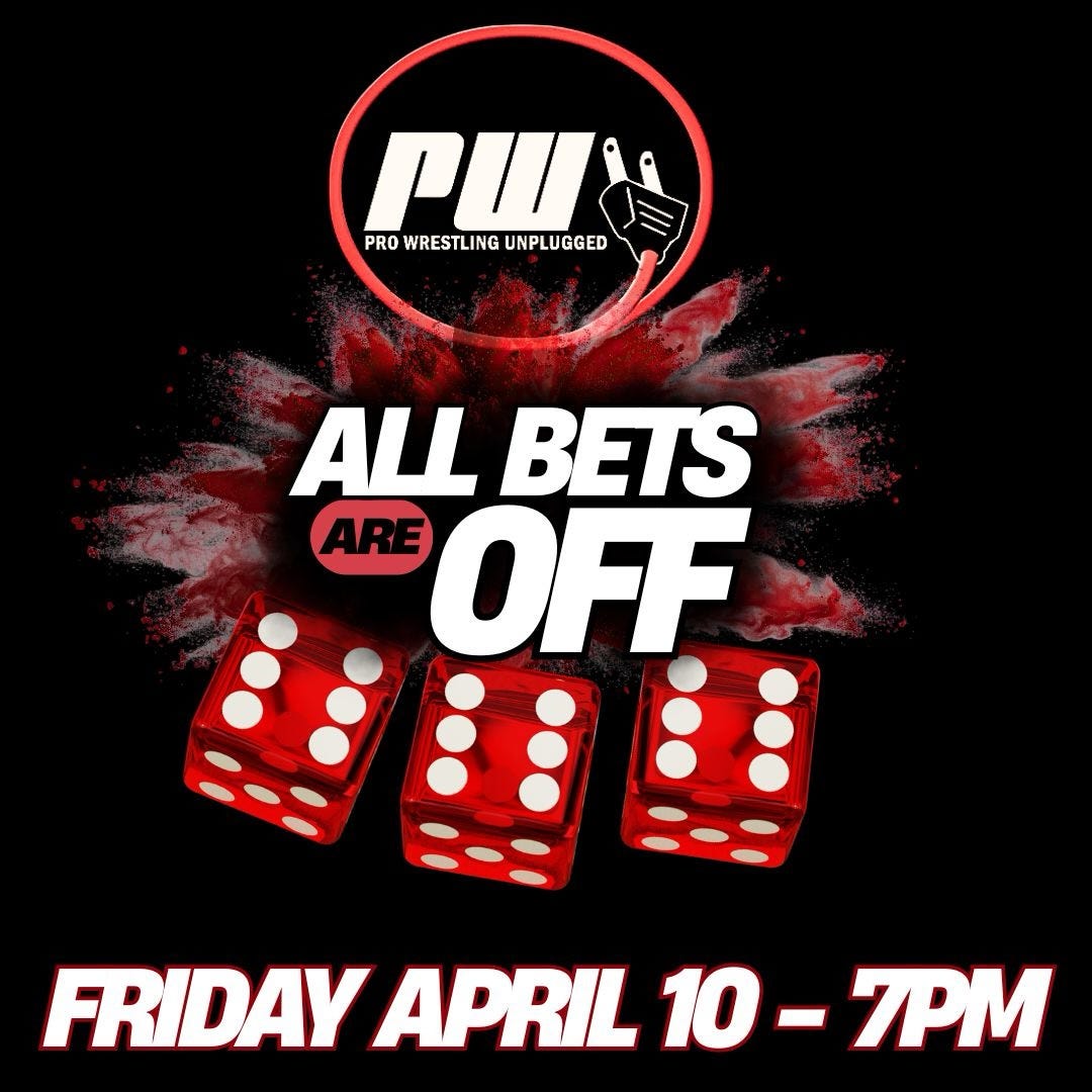 Super Powers Of Wrestling and Pro Wrestling Unplugged presented All Bets Are Off on Friday, April 10, 2026, at the Pro Wrestling Star Academy in Mount Holly, New Jersey. Results are below.