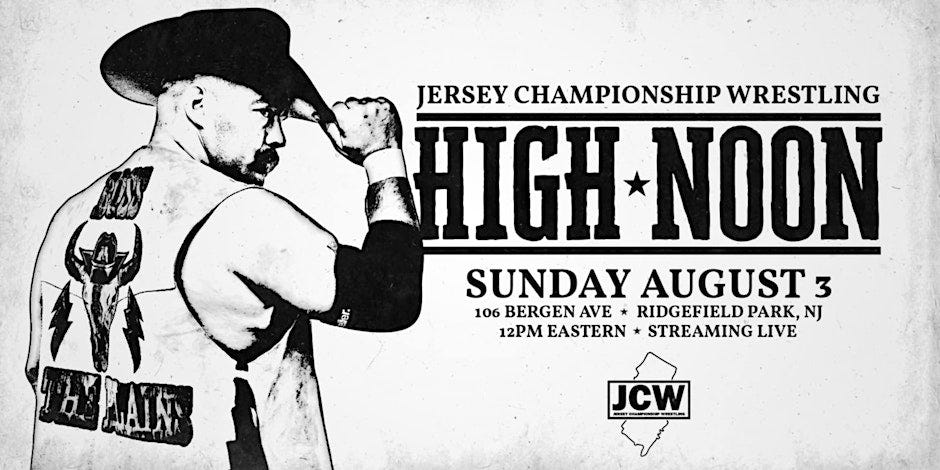 Jersey Championship Wrestling returns to Ridgefield Park, New Jersey, on Sunday, August 3, 2025, with High Noon at The Mecca (106 Bergen Avenue, Ridgefield Park, NJ). Bell time is scheduled for 12:00 p.m. Tickets are available online.