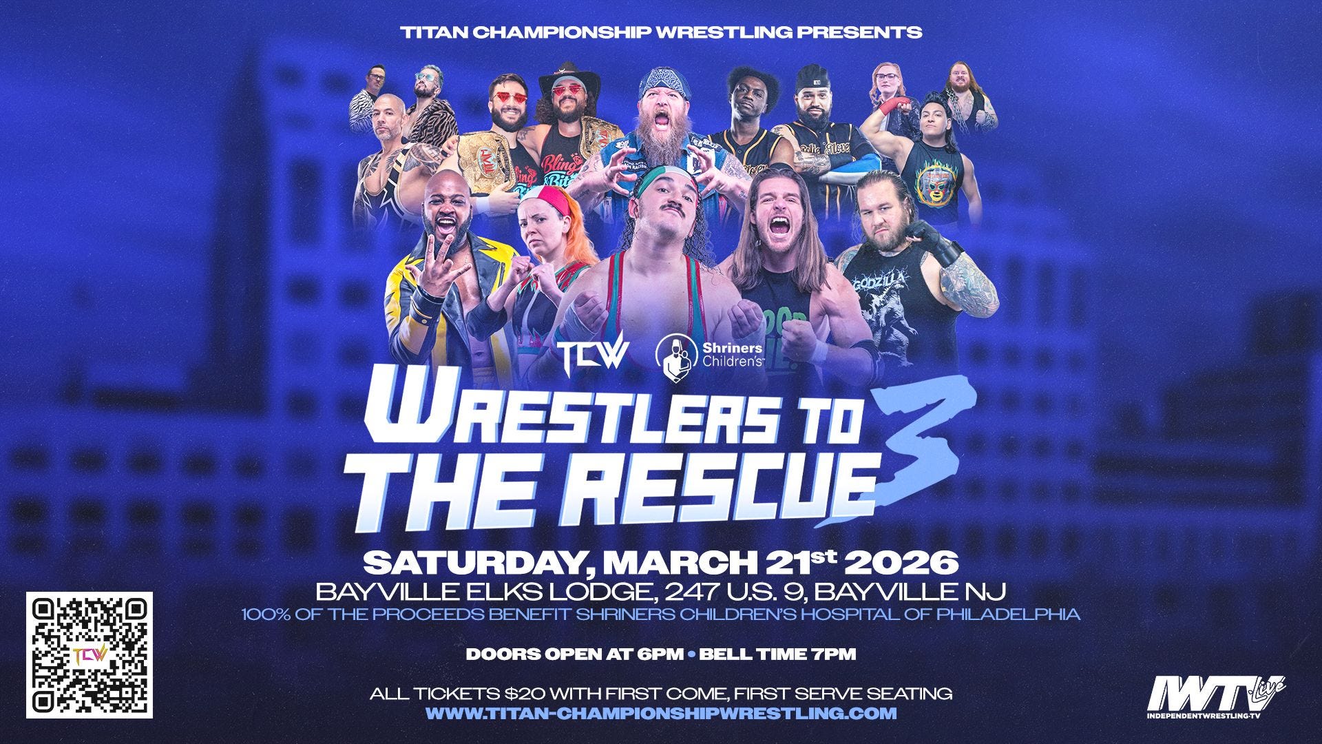 Titan Championship Wrestling presented Wrestlers To The Rescue 3 on Saturday, March 21, 2026, at the Bayville Elks Lodge in Bayville, New Jersey. Results are below.