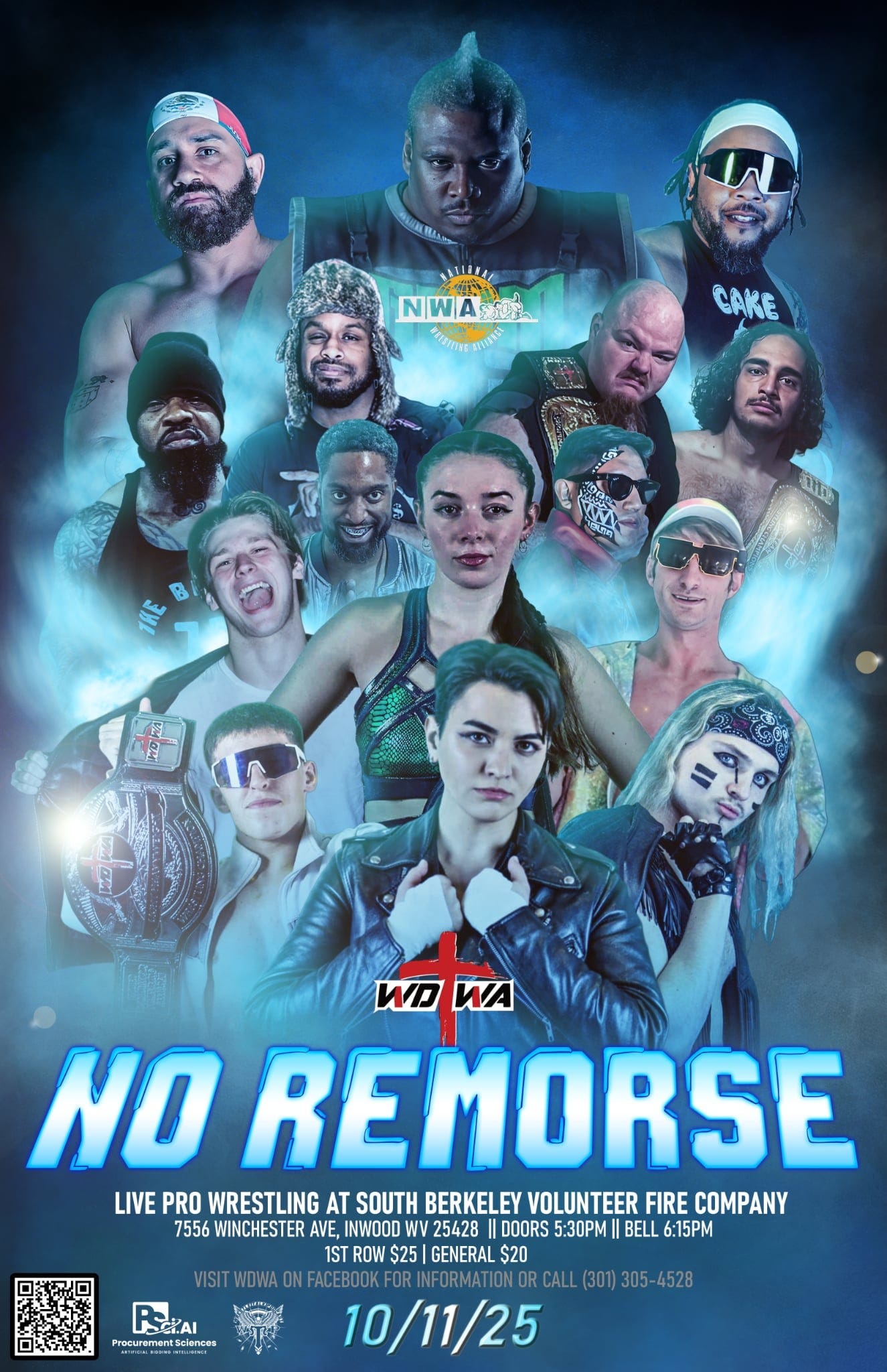 WDWA will hold No Remorse at South Berkeley Volunteer Fire Company, 7556 Winchester Ave, Inwood, WV on Saturday, October 11, 2025. The bell time is 6:15 PM, with doors opening at 5:30 PM. Tickets are available by calling or texting (301) 305-4528.