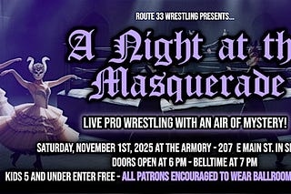 Route 33 Wrestling presents A Night at the Masquerade on Saturday, November 1, 2025, at the Armory, 207 East Main Street, in Spencer, West Virginia.